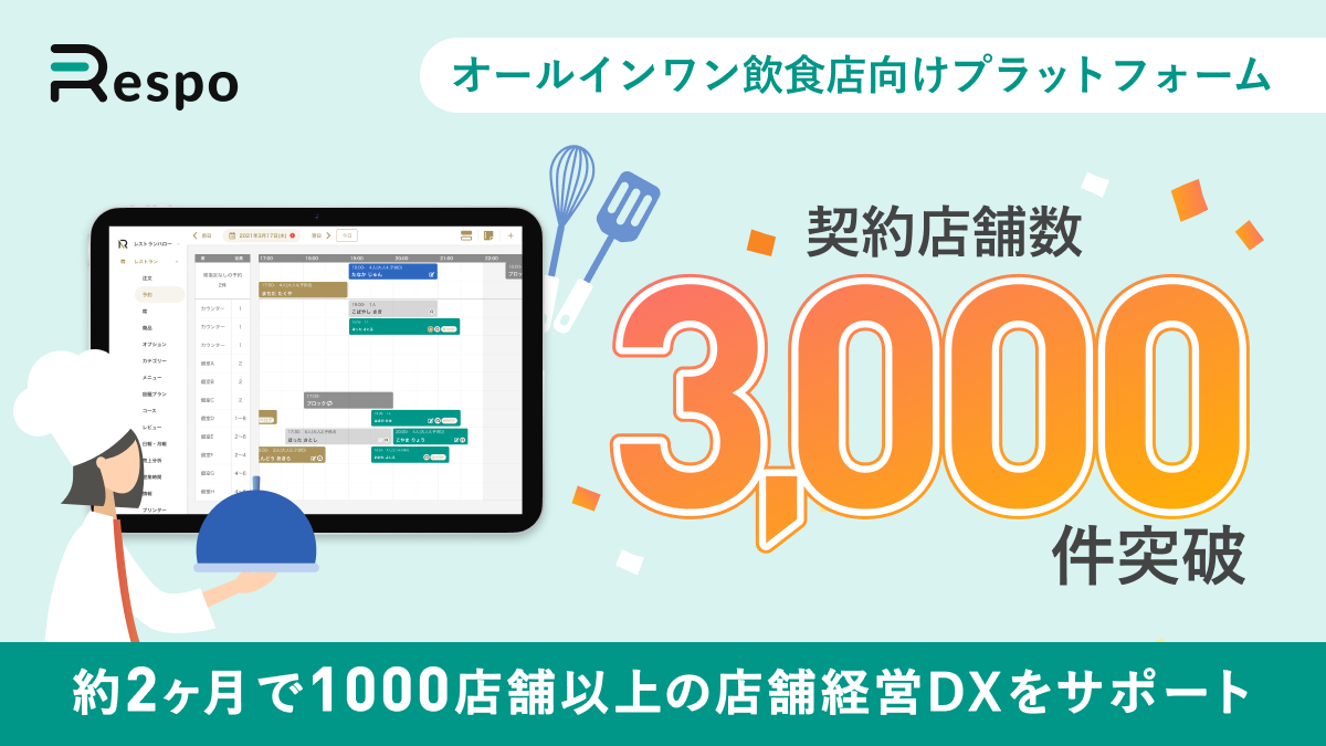 We are pleased to announce that as of August 2025, the number of restaurants using "Respo by AutoReserve" (commonly known as "Respo"), the all-in-one platform for restaurants provided by Hello Inc., has surpassed 3,000.