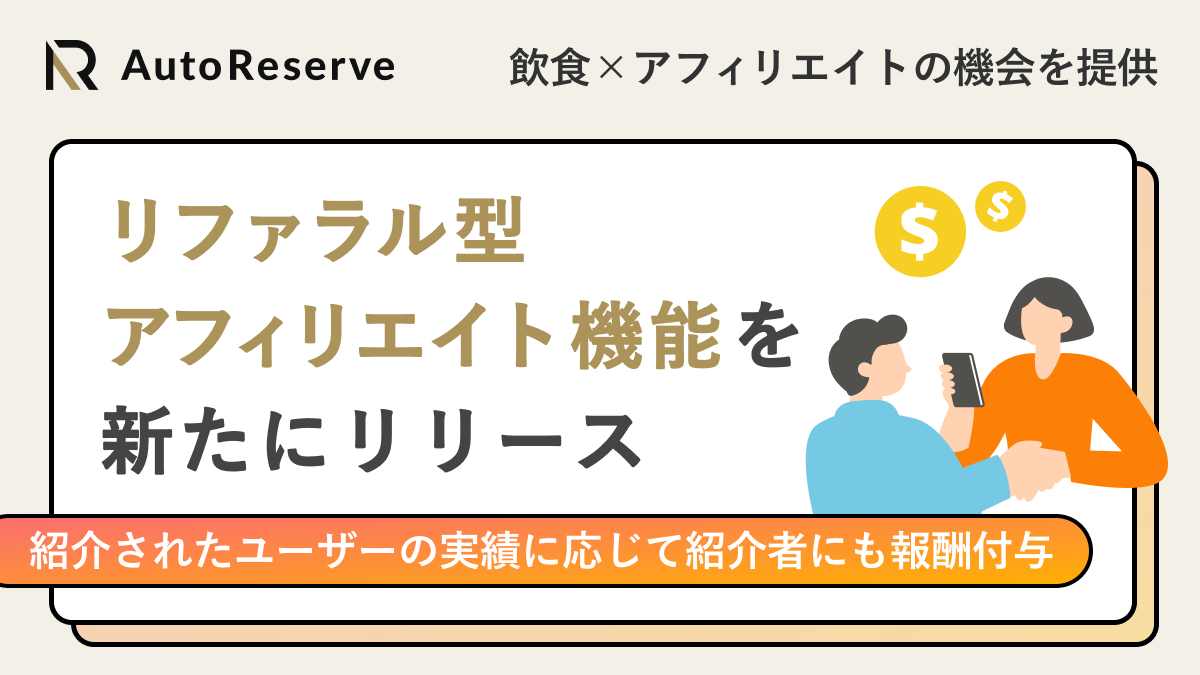 このたび「AutoReserveアフィリエイト」においてアフィリエイター同士の紹介で報酬を得られるリファラル型アフィリエイト機能を新たにリリースしましたことをお知らせいたします。